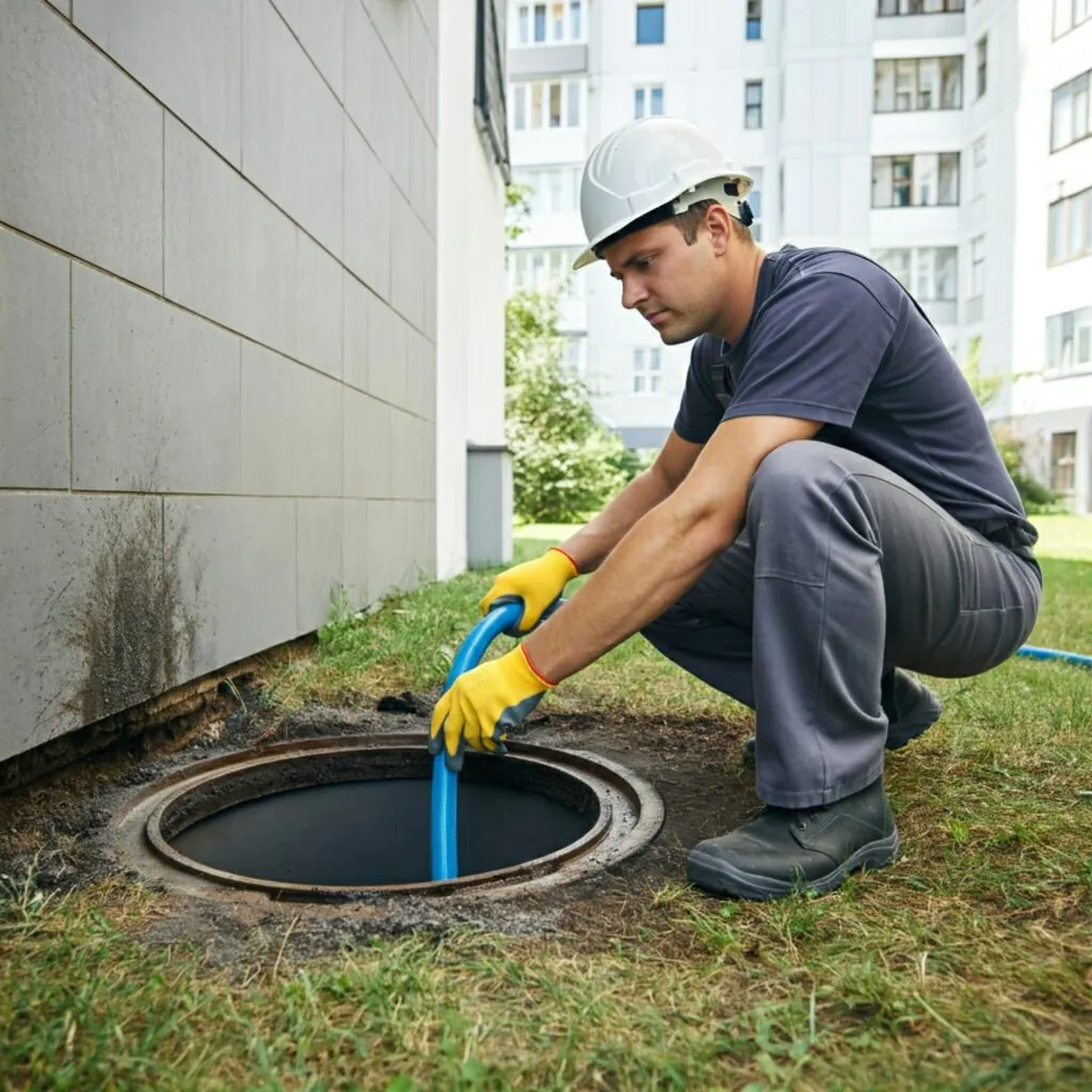 Desentupimento de Coluna É a desobstrução das tubulações verticais de esgoto em prédios, que acumulam resíduos sólidos, gordura ou detritos, afetando o escoamento de água e resíduos dos andares.
